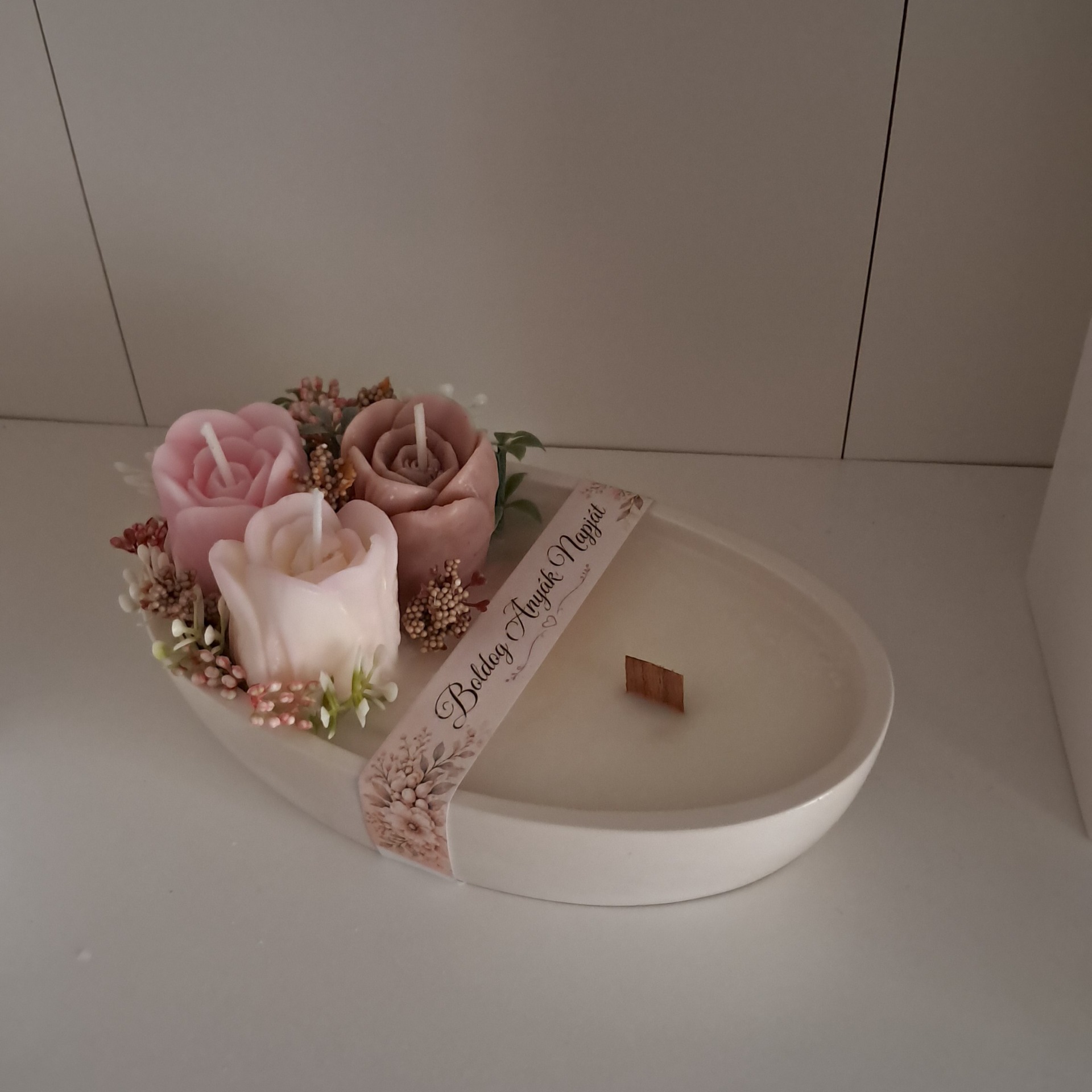 Egy igazán különleges, szívhez szóló ajándék, amely nemcsak dekoráció, hanem meghitt pillanatok teremtője is. Ez a kézzel készült gyertyatál finom pasztell színeivel és virágos részleteivel a szeretet és törődés üzenetét hordozza – tökéletes választás Anyák napjára vagy bármilyen alkalomra, amikor örömet szeretnél adni.