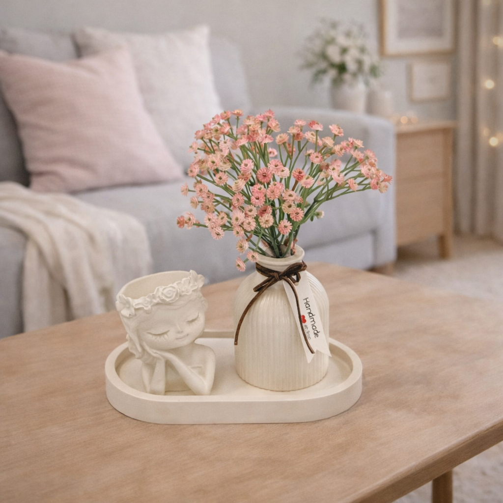 Letisztult, természetes hangulatú kézműves lakásdekoráció pasztell árnyalatokkal.